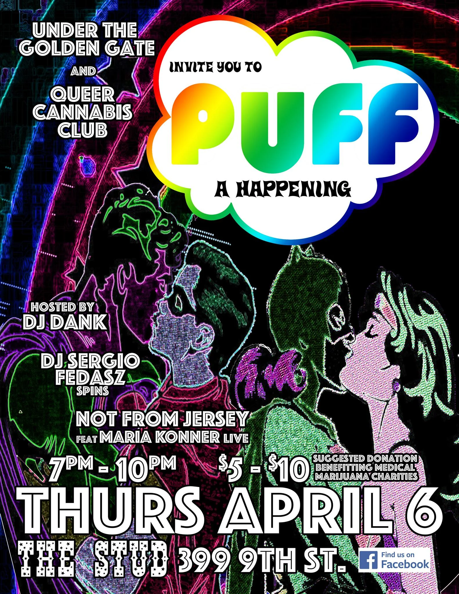 It's a Happening, turn on to PUFF, a queer marijuana appreciation party, at The Stud on a NEW night, Thursday, April 6 from 7-10pm. $5-$10 donation at the door.