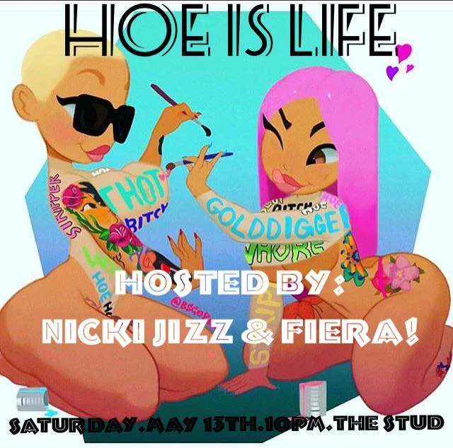 Nicki Jizz & Fiera! present to you: ...:::HOE IS LIFE:::... ..::SAT. MAY 13TH::.. ....::::THE STUD::::....