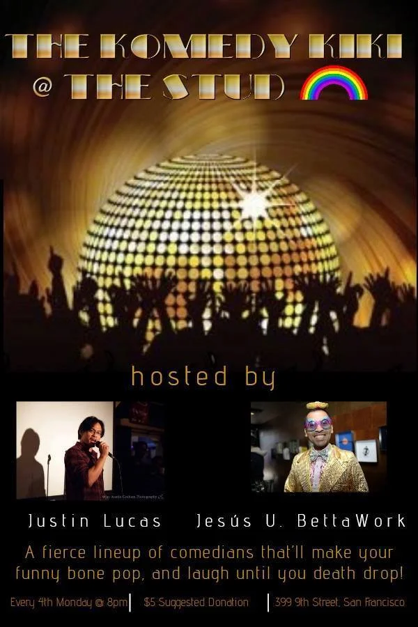 Comedians with a kiki twist, Justin Lucas and Jesús U. BettaWork, bring the ha, ha, ha, ha, ha, HA! to the legendary Stud Bar in SF!