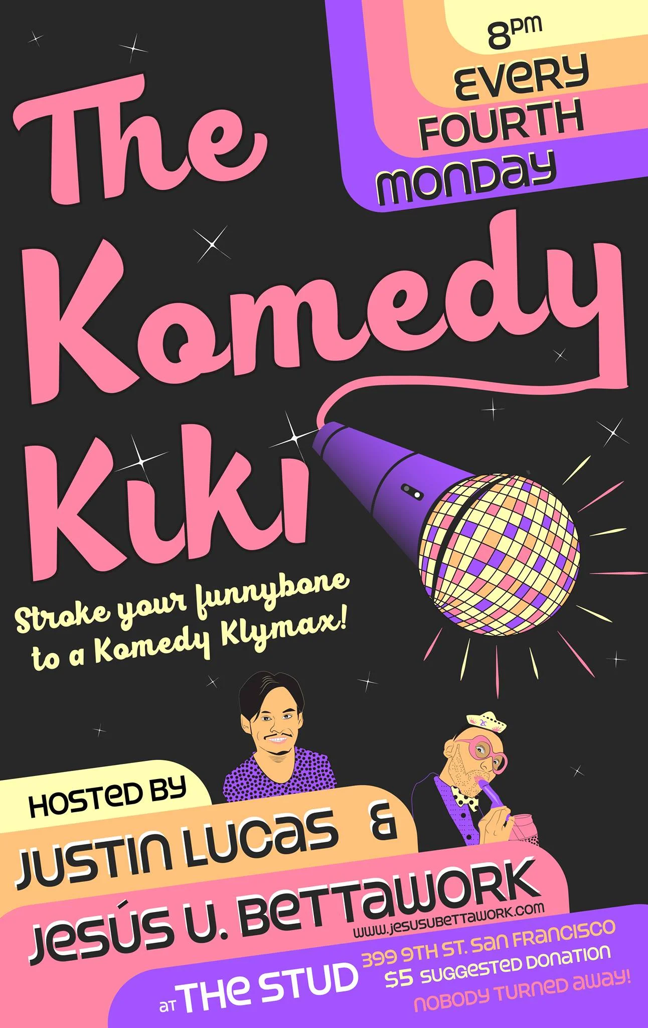 Comedians with a kiki twist, Justin Lucas and Jesús U. BettaWork, bring the ha, ha, ha, ha, ha, HA! to the legendary Stud Bar in SF!