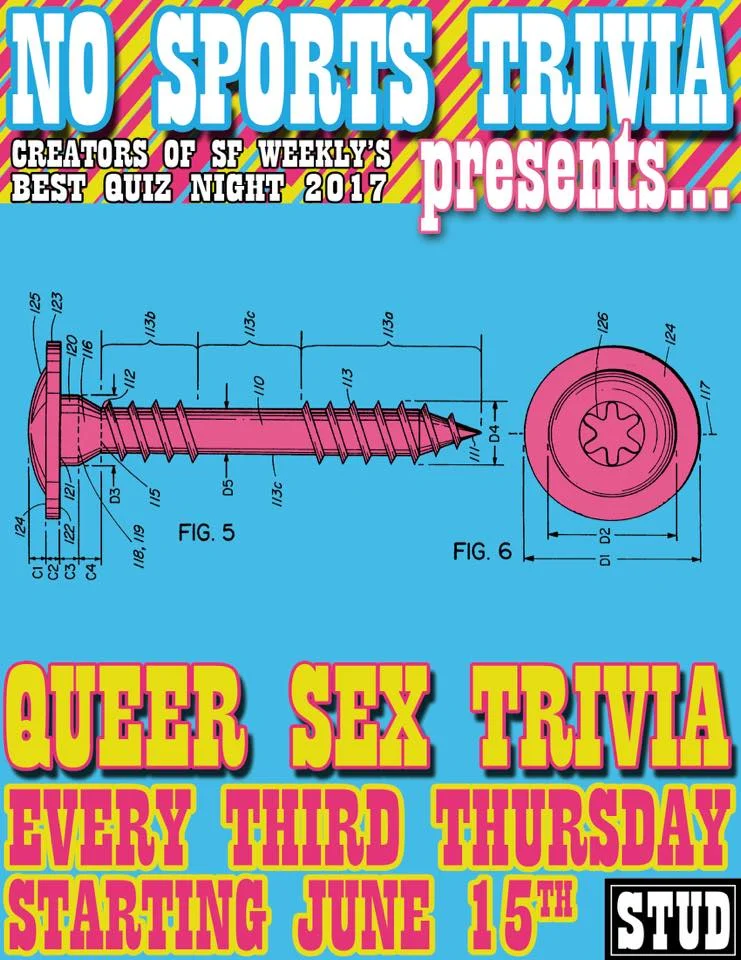 No Sports Trivia was voted best trivia of 2017 by the readers of SF Weekly for their weekly Monday night game at Shotwells' Bar in the Mission. Come to the Stud to see what happens when we've got no adult supervision and a sequin MC booth in a leather bar!