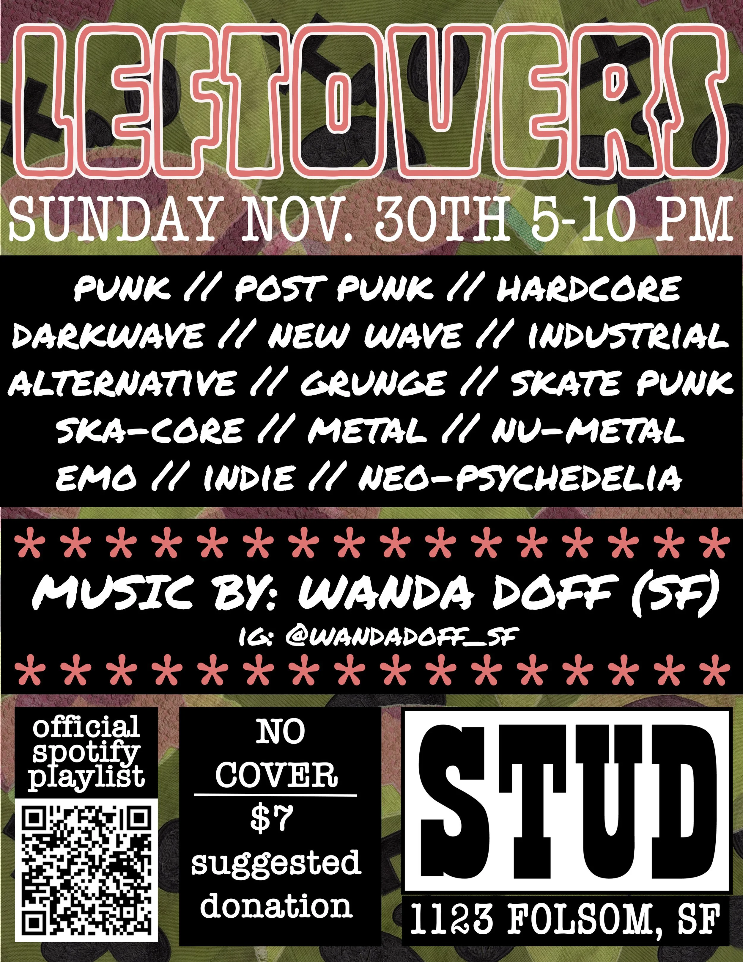 SO EXCITED to bring my new punk night to @studsf next Sunday Nov. 30th from 5-10 PM!