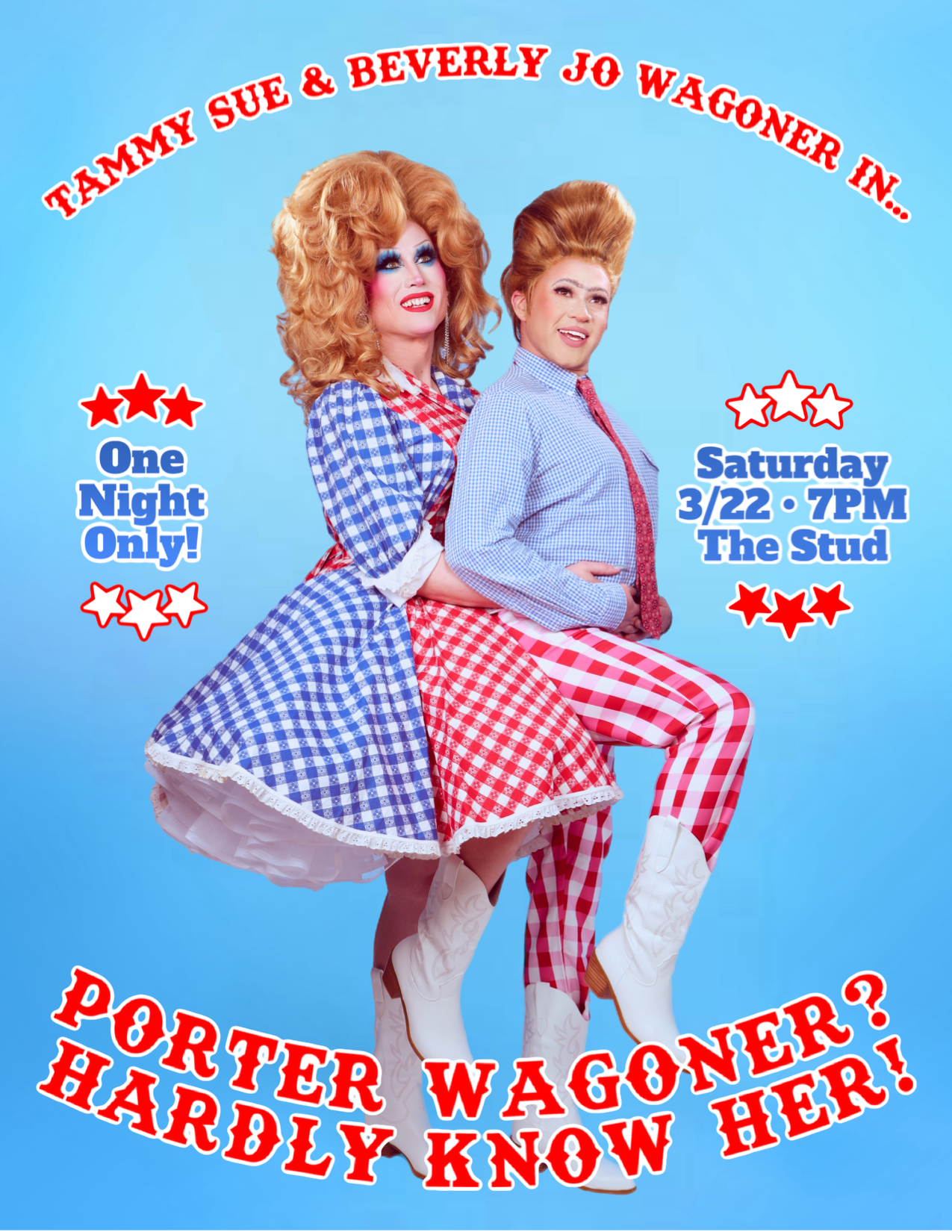 Porter Wagoner? Hardly Know Her! Saturday, March 22, 2025 7:00 PM 9:00 PM 19:00 21:00 The Stud SOMA San Francisco, CA (map) Google Calendar ICS