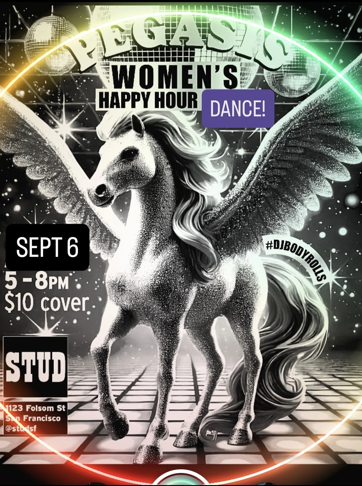 Pegasis Women's Happy Hour Dance Saturday, September 6, 2025 5:00 PM 8:00 PM 17:00 20:00 The Stud SOMA San Francisco, CA (map) Google Calendar ICS